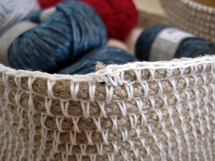 Корзинки, которые помогают организовывать пространство, не обязательно покупать готовые.Их можно связать самостоятельно, корректируя размер и цвет под свои потребности.