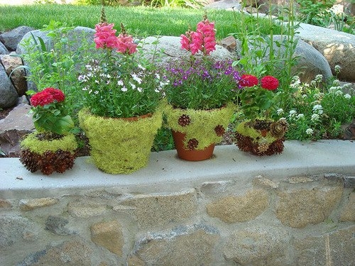 Интересный декор цветочных горшковТворите красоту из всего, что попадается под руку, чтобы окружающие были счастливы.