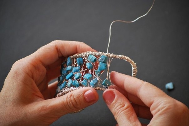 Процесс создания медальона "Морская пена" в технике wire wrap