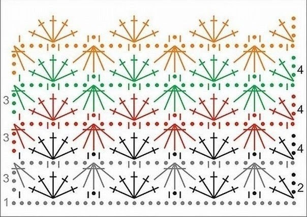 Красивый узор крючком можно выполнять как монохромно,так и чередуя полоски разных оттенков.