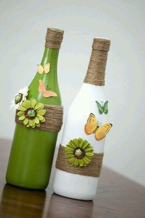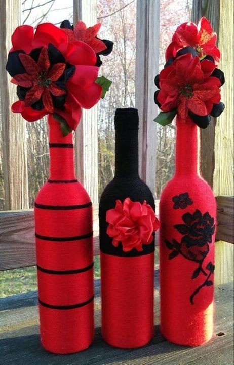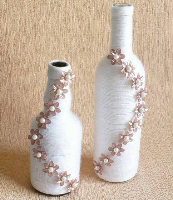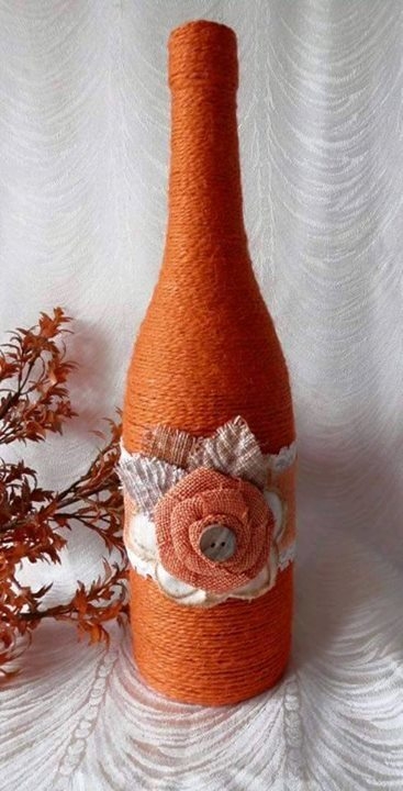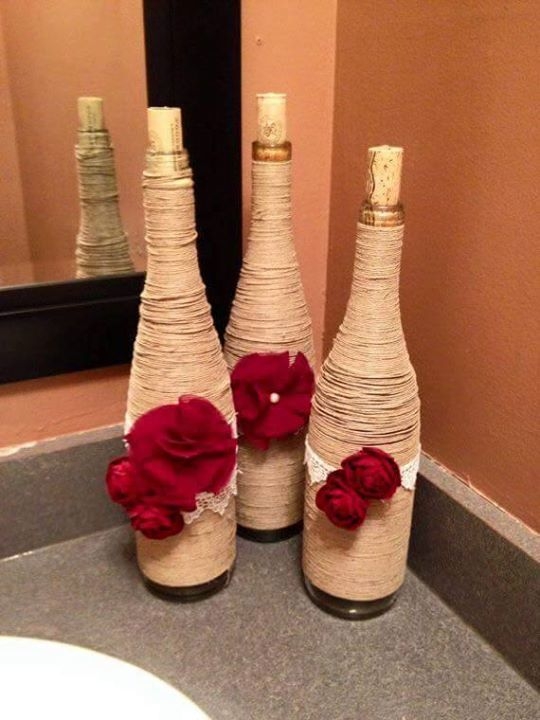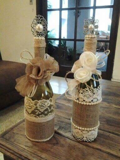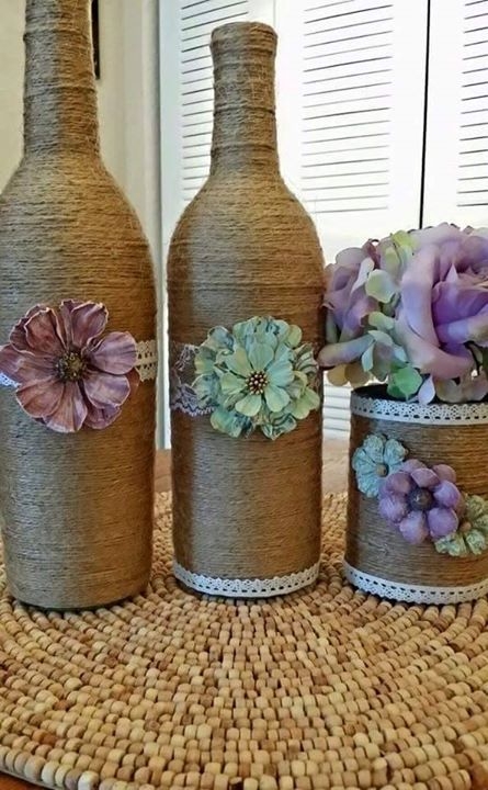 Декор бутылокСамый простой декор бутылок - это с помощью кружева.Творите красоту и будьте счастливы.