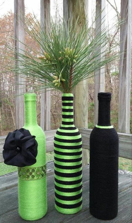 Даже старые стеклянные бутылки могут оказать добрую службу в украшении пространства.