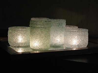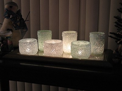 .Mne nravitsea idea so stekleanymi banochkami,potomu chto bezopasno zazigati svechi v nich.