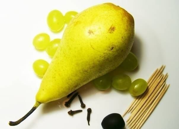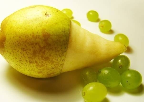 Ну и какой в нем смысл? Чищеная груша очень быстро потемнеет, да и вся композиция потечет.