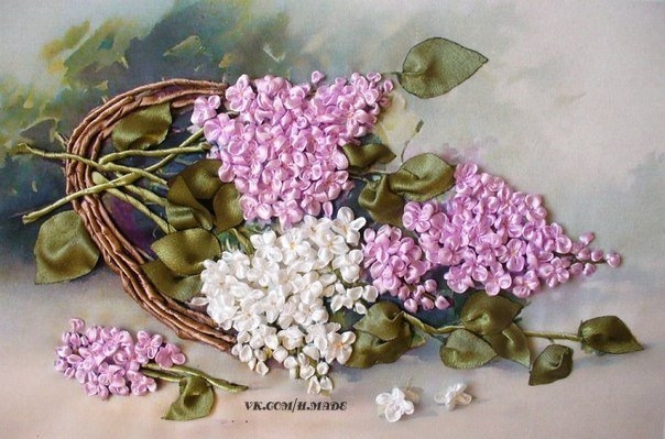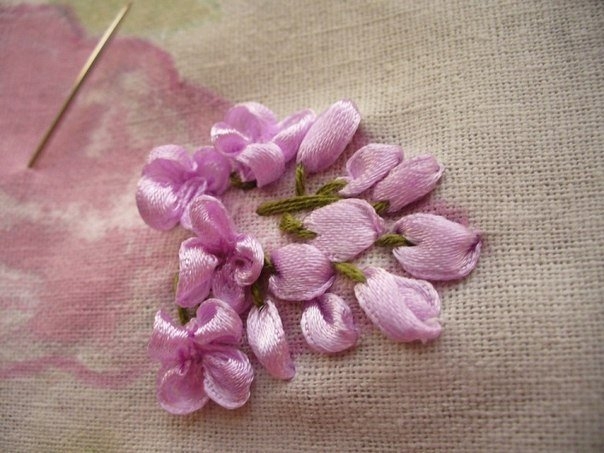 Вышиваем сирень лентами, рождая под пальцами изумительную красоту,не уступающую свежей цветущей сирени.
