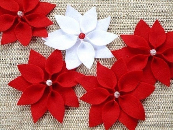 Рождественская пуансетия из фетра будет цвести бесконечно.