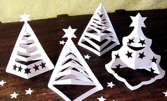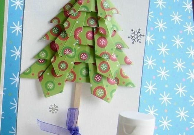Красивая ёлочка из бумагиТакой елочкой будет здорово украсить рабочий стол, например.