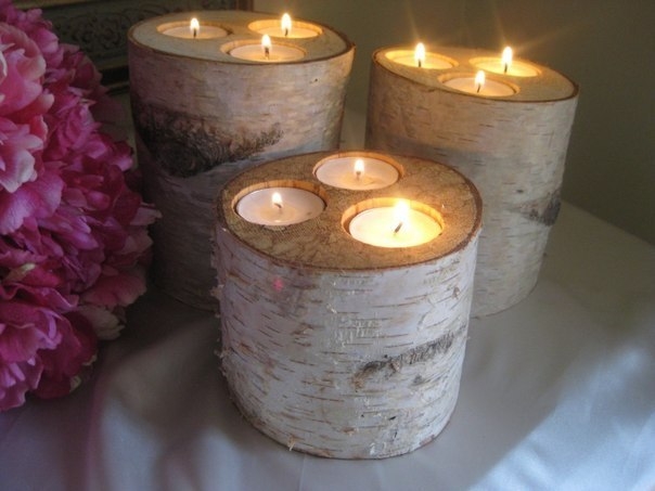 Оригинальные подсвечникиВ идеале стоит использовать свечу на батарейках.
