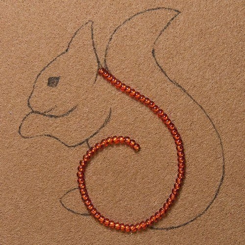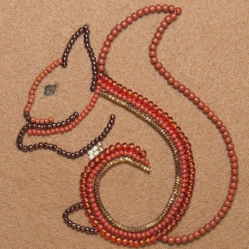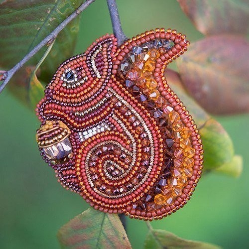 Милая брошка в виде белочкиМилая брошка в виде белочки по своей сути является бисером, который пришит на фетровую основу.