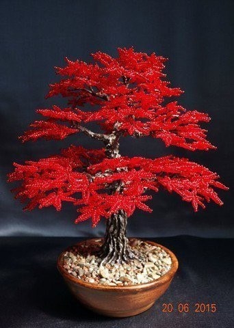 Миниатюрное дерево из бисера способно заменить дорогостоящий бонсай и подарить столько же радости.