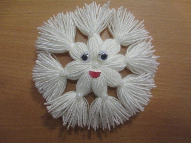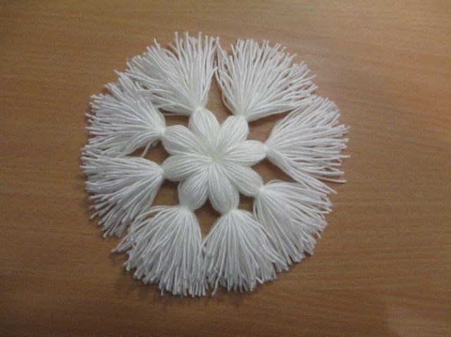 Как сделать необычную снежинку из пряжи