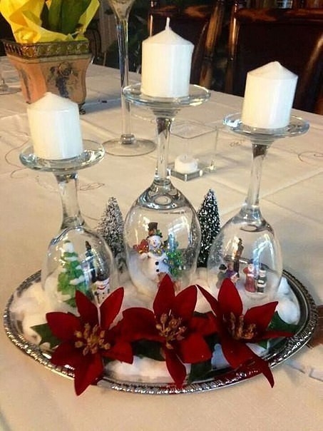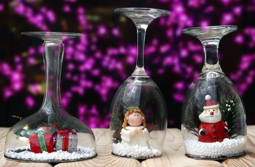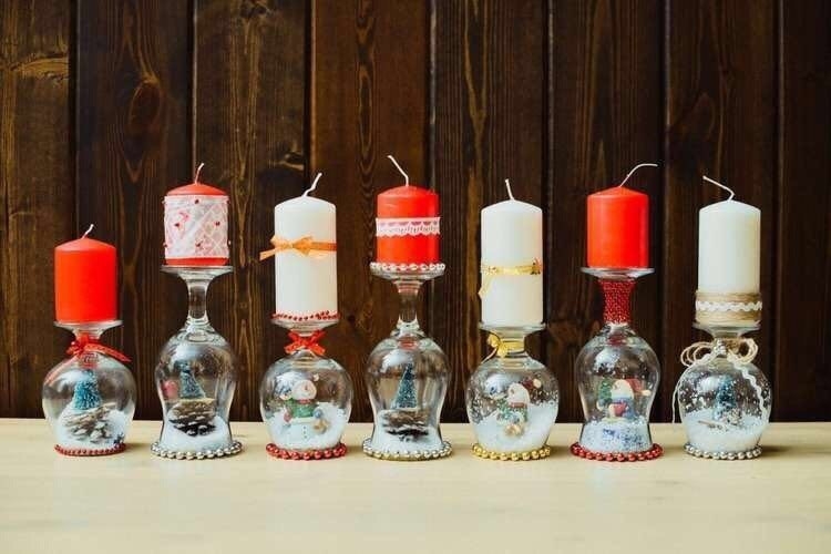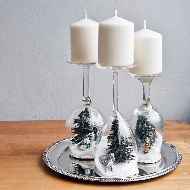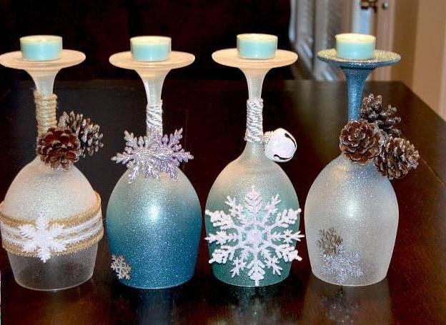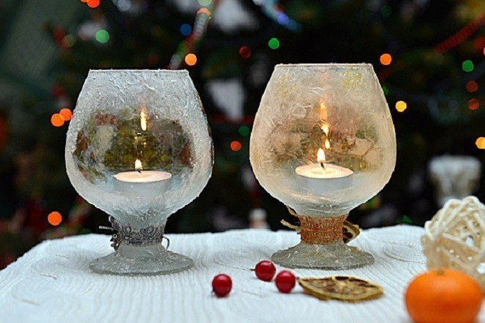 Новогодние фужерыВооружитесь красками по стеклу, чтобы превратить фужеры в подсвечники.