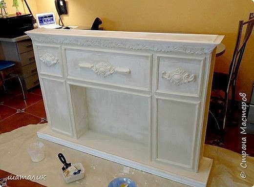 Фальш-каминМатериалы: гипс, структурные пасты, акриловые краски, лак на водной основе, форма, кисти, мастихин, плитка, багет, клеевые материалы, силиконовые формы, стеклянные бусин...