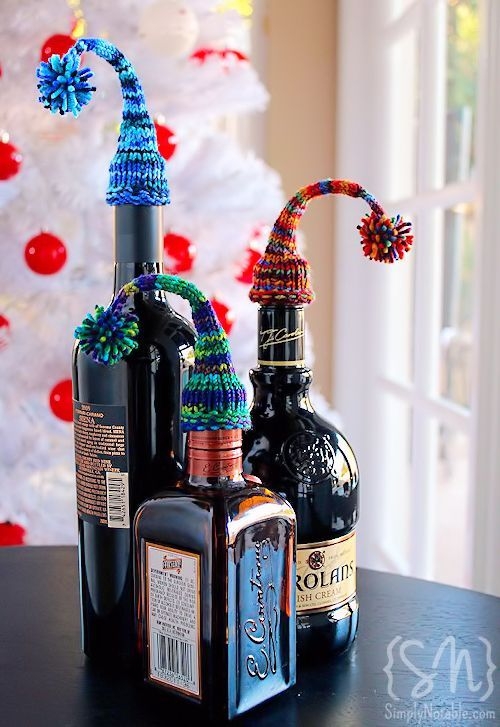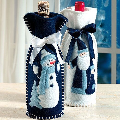 Новогодний декор бутылокПомните, что мыть такие бутылки не стоит.Только сухая уборка.