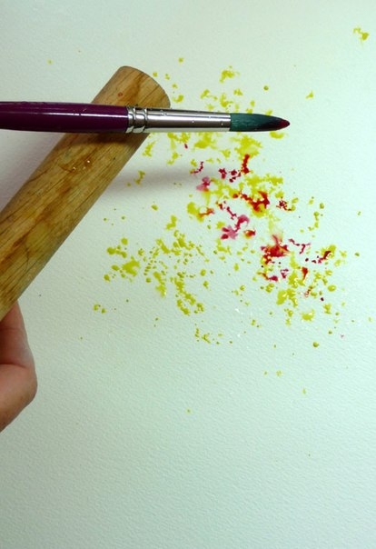 Техника "НАБРЫЗГ", но можно смять произвольно кусок бумаги или газеты и таким"тампоном" шлепать по бумаге.Не только дерево, но и цветущий луг красиво получится.Фантазируйте!!!