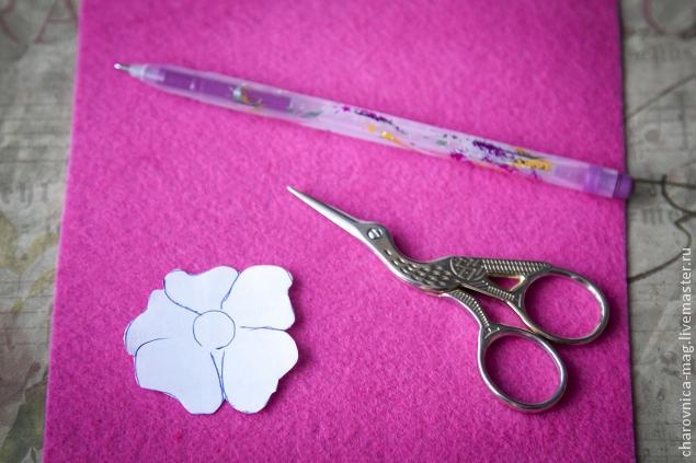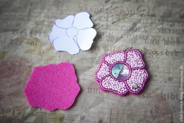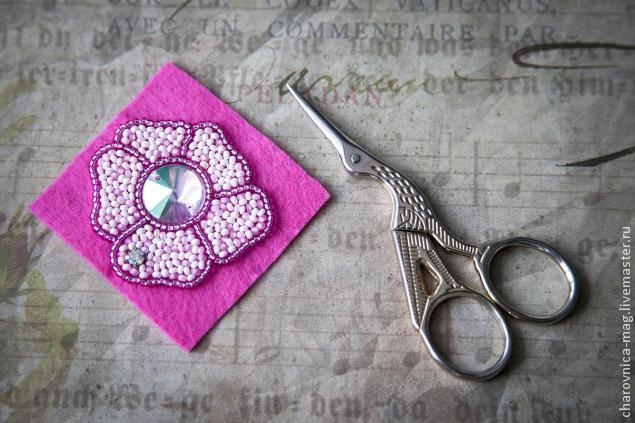 Вышивка бисером кулона в виде простого цветка: часть 2Автор Charovnica (Татьяна).Когда весь цветок заполнен бисером, обрезаем лишний фетр максимально близко к краю, но аккуратно, ч...