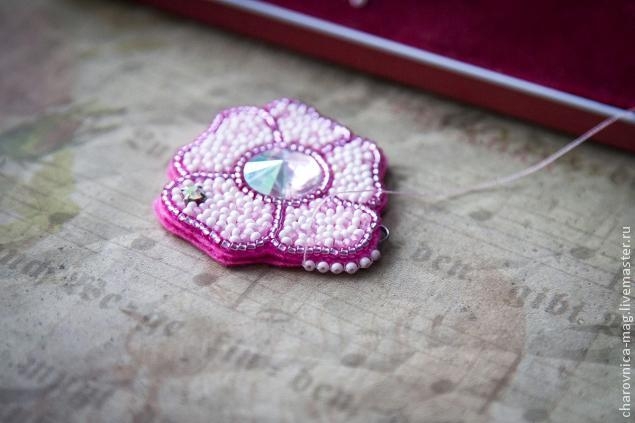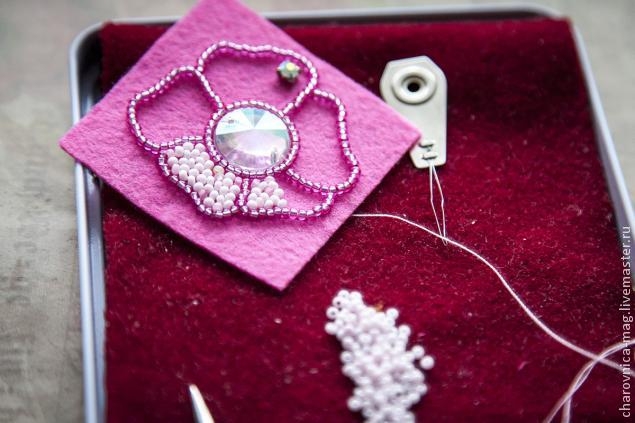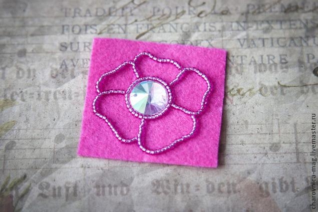 Вышивка бисером кулона в виде простого цветка: часть 2
