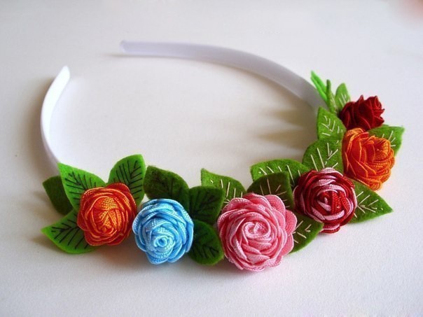 Как обработать огнем лепестки из фоамирана: часть 2 Начинаем формировать розочку. Приклеиваем сначала четыре лепестка, которые мы складывали гармошкой. Первыми двумя лепестками закрываем полностью бульбочку, клей наносим на весь лепесток. Приклеиваем все остальные лепестки так, чтобы розочка не получилась однобокой. Подробно не останавливаюсь, так как мастер-классы по формированию цветов уже были опубликованы. Из нескольких таких розочек можно сделать венки, заколки, гребни. Надеюсь, дорогие мастер...