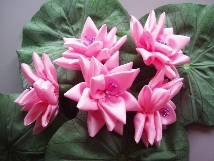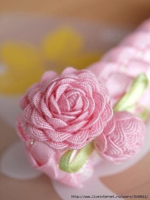 Вышиваем объёмный цветок летами При плотном переплетении и при переплетении с оставлением воздуха между витками ленты получатся немного разные цветочки.
