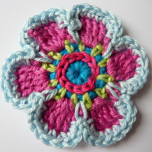 Милые цветочки с крупной бусиной в середине Вязаные цветы имеют так много вариантов, что каждый раз находится новый прекрасный цветочек, который хочется связать. Творите и будьте счастливы, наши дорогие.