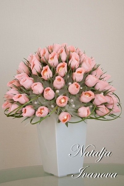 Бумажные букеты Кто-то возмутится: зачем делать пылесборники. Но можно не хранить эти букеты целую вечность, а только использовать для украшения стола и праздников.