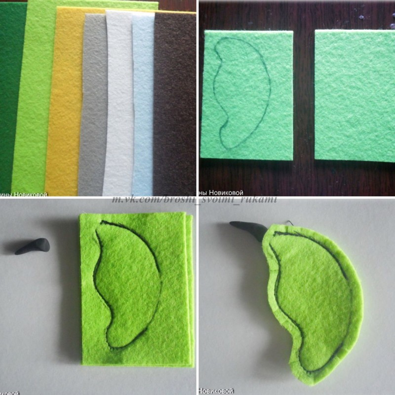 33. Птичка практически готова. Осталось оформить задник. Для этого берем выкройку тельца и обводим ее на фетре.
