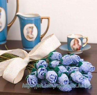 Милый букетик текстильных роз отлично впишется в интерьер в стиле кантри и не только.