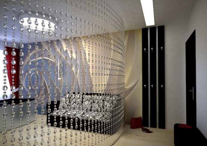 С помощью штор из бусин можно не только украсить интерьер, но и зонировать его.