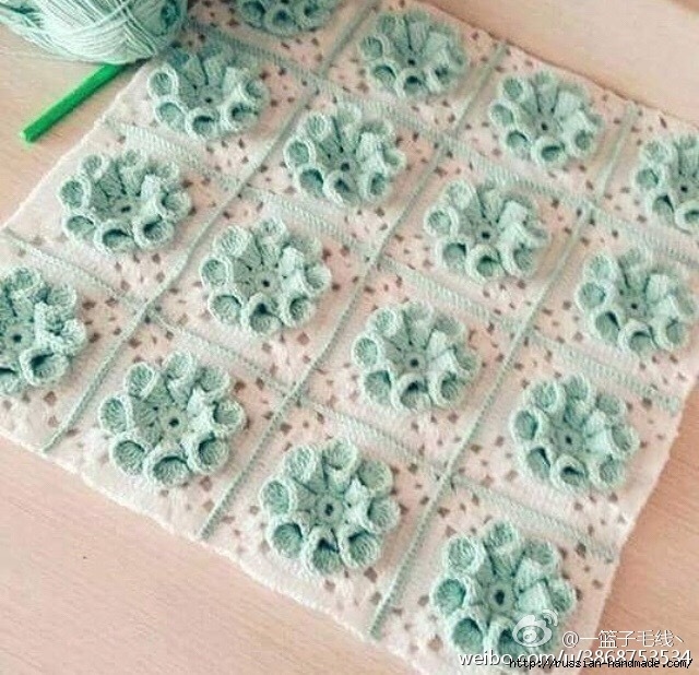 Плед мотивами крючком с объемными цветами