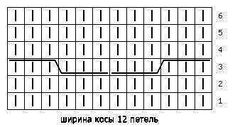Узор на переде: Расходящиеся жгуты из 12 петель, жгут 2х2, между жгутами 2 изн.