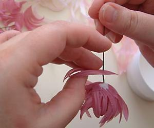 Хризантема - цветок из тонкой ткани - будет трепетать на ветру и выглядеть красивее настоящей.