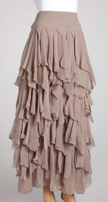 На фото неплохи юбки с кружевными вставками и в несколько цветов, только вот сочетания цветов не очень удачны. А из «рюшечных» юбок единственная хороша — цвета кофе с молоком…