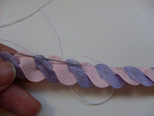 Милые цветочки из зигзагообразной тесьмы могут стать даже брошками.