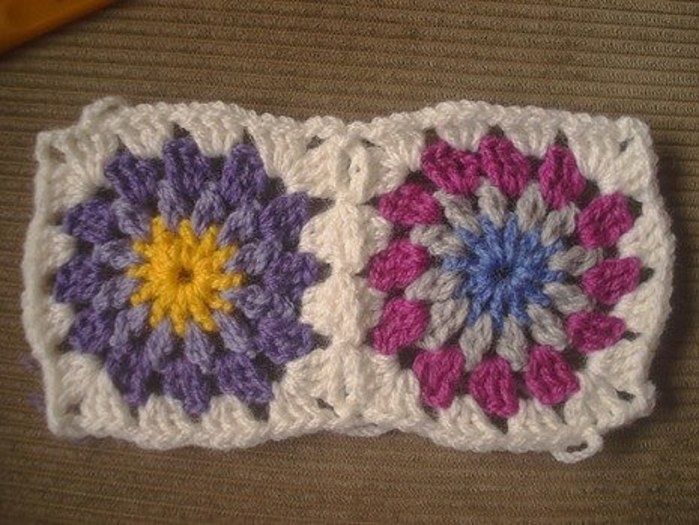 Каждый следующий квадрат в последнем ряду связывайте соседний квадрат. Вяжите такие квадраты до формирования одеяла.