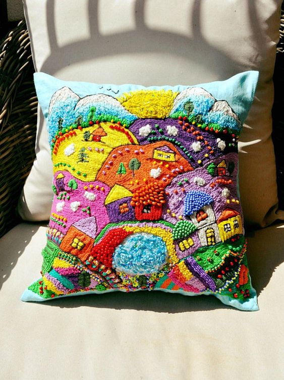 Идеи красивых диванных подушек вдохновят вас взяться за пяльцы или найти применение лоскутам.