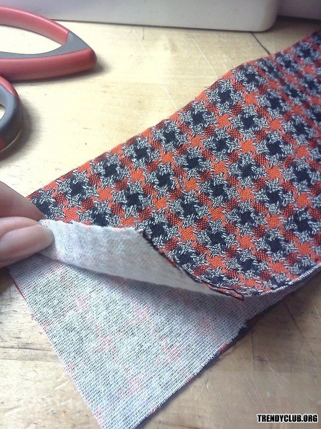 2. Приклеиваем флизилин к изнаночной стороне пояса. Складываем пополам, проглаживаем утюгом.