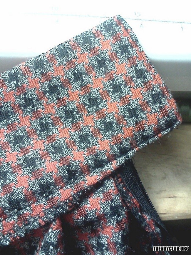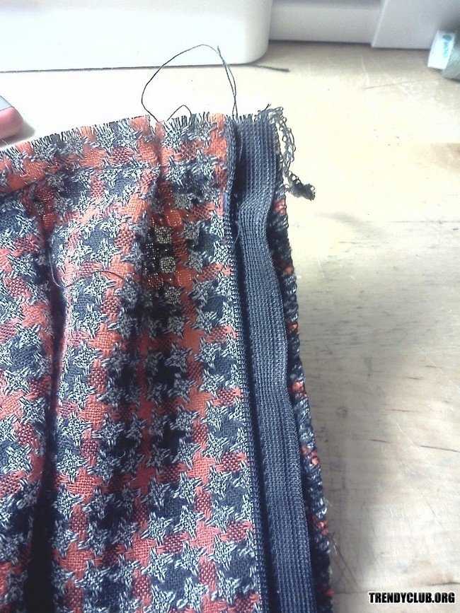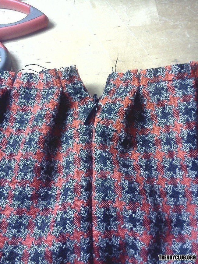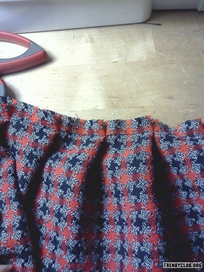 3. На полотнище юбки закладываем складки, такие, как вам хочется, главное, чтобы соответствовало вашей талии. Закрепляем их машинной строчкой.