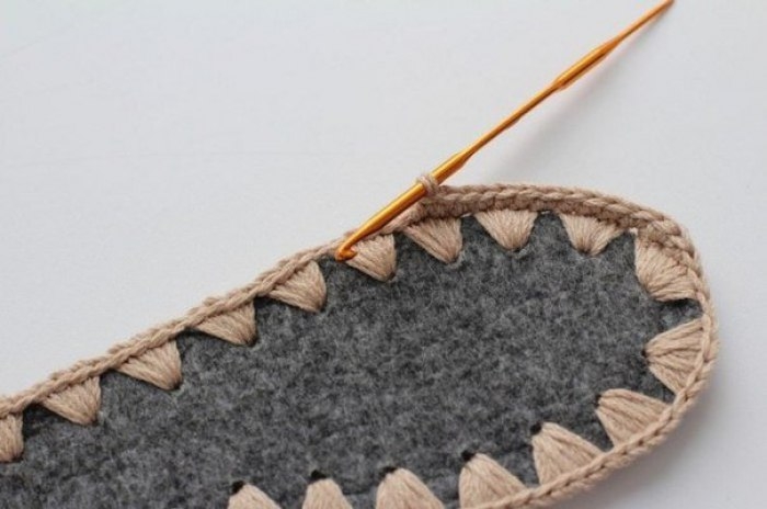 3. Пришиваю верх к подошве. И продолжаю вязать голенище сапожка любым узором, можно добавить петель, как нравиться сделать