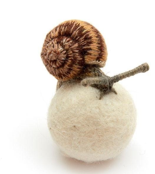 Клэр создает войлочные скульптурки насекомых в смешанной технике фристайл, совмещая в своих работах вышивку, валяние и разнообразные материалы.
