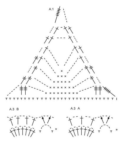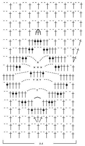 Дальше вяжем по А.4, повторяя его по горизонтали 8-9-10-11-12-14 раз.