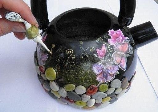 Если старый чайник пришёл в негодность, или просто куплен новый чайник, и старый стал неизбежно не нужен, то ему можно дать вторую жизнь, превратив его в шедевр.