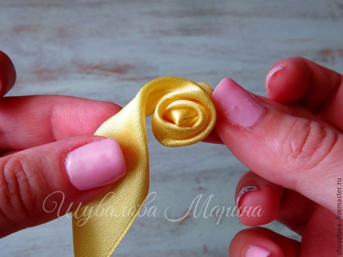 Плотные розочки из атласных лент с успехом будут использованы как для брошек, так и для украшения заколок или сумок.