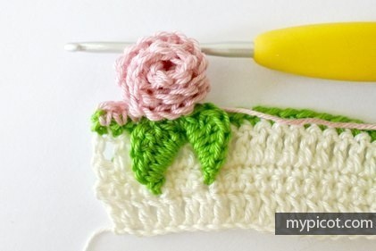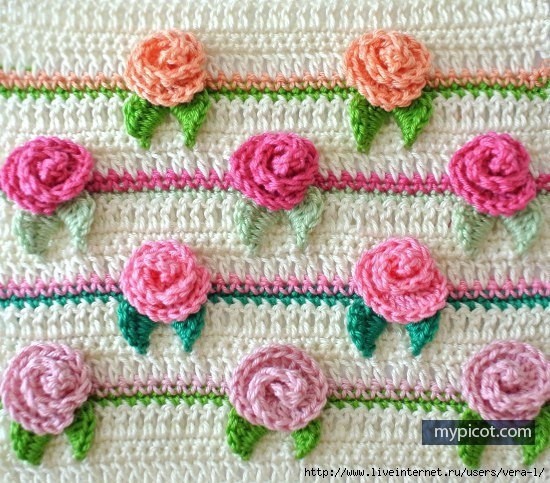 Теплый плотный узор с объемными розочками отлично подходит для создания уюта в любое время года.