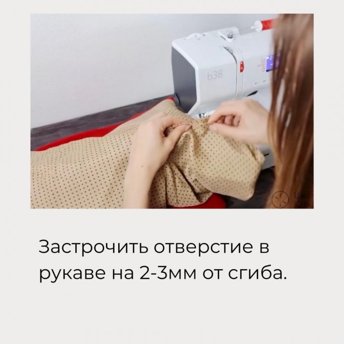 - при стачивании бокового шва рукава оставьте необработанное отверстие (примерно 20 см длиной), оно нам понадобится, чтобы вывернуть изделие.