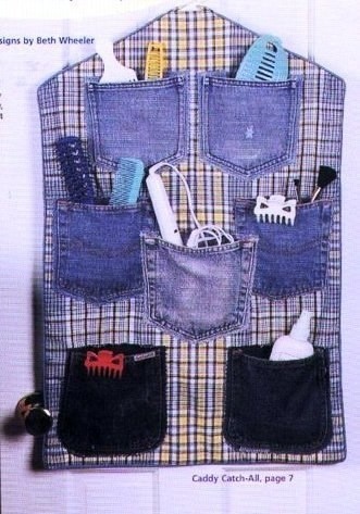 Органайзеры из старых джинсов удобны не только в ванной или в уголке рукодельницы, но и в дорогу.