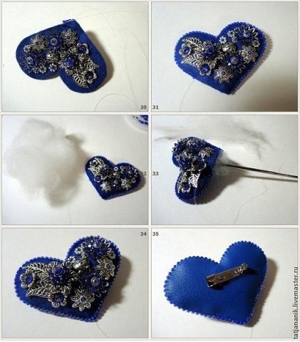 Брошь "Сердечко"Чем ярче сияют стразы, тем наряднее получится брошка.