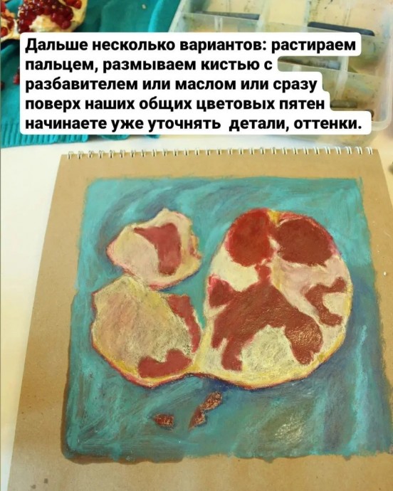 - пастель масляная, а значит размывать её можно средствами для масляных красок: разбавителем, или обычным растительным