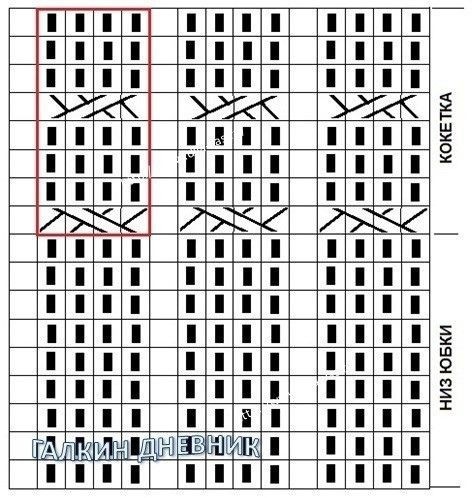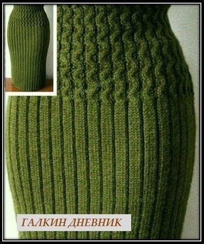 Верх юбки оформлен узором "змейка" переходящим в простой узор из лицевых и изнаночных петель в виде резинки.