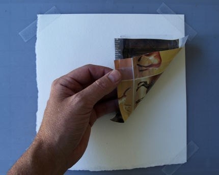 Закрепляете картинку на поверхности листа, куда хотите перевести изображение, лицом к листу.
