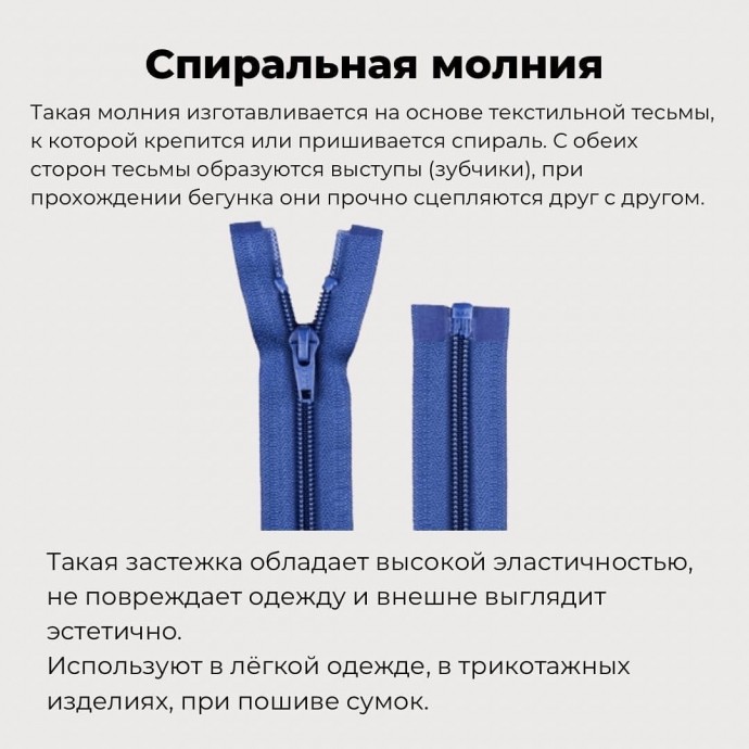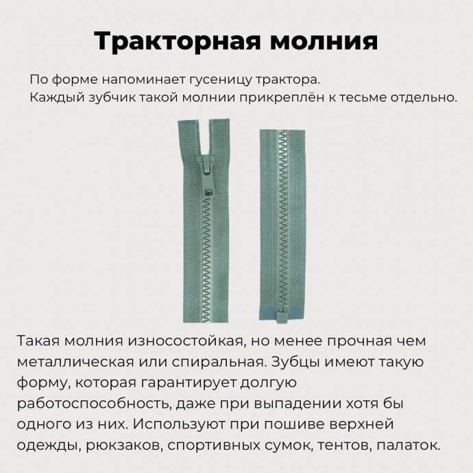 - Молнии с двумя бегунками, позволяют расстёгивать или застёгивать вещь с двух сторон. Используют в верхней одежде: куртках, различных топах, платьев.